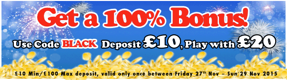 Valid only once between the 27th - 29th of November on a min deposit of £10 or max deposit of £100.